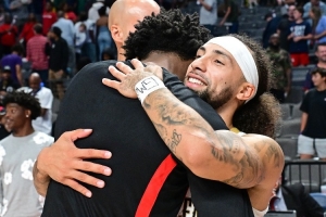 在本場比賽中,阿門-湯普森和阿爾瓦拉多因為卡位問題爆發(fā)了沖突,不過,他們兩人在賽后擁抱,握手言和。