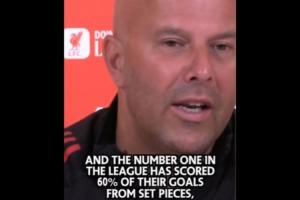 斯洛特表示:“如果你告訴我,我們40%的失球都來自定位球,而聯(lián)賽第一60%的進(jìn)球都來自定位球,但我們卻只落后他們一分,我大概會(huì)覺得,‘這情況也沒那么糟’。當(dāng)然,對于一支志在競爭的球隊(duì)而言,丟四個(gè)(定位)球顯然太多了?!?/p>