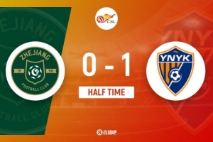 上半場補(bǔ)時10分鐘。半場戰(zhàn)罷,浙江隊(duì)0-1云南玉昆。