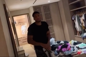阿德托昆博對此并不是很高興,這位雄鹿的超級巨星一度懇求妻子把手機放下:“寶貝,全世界都在看著呢?!?/p>