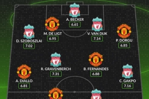 體育資訊10月19日訊 本輪英超將上演曼聯(lián)與利物浦的焦點(diǎn)對決,數(shù)據(jù)網(wǎng)站W(wǎng)hoscored也盤點(diǎn)了兩隊(duì)球員本賽季英超場均評分最高陣容,具體如下: