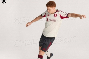 利物浦新賽季客場(chǎng)球衣由阿迪達(dá)斯設(shè)計(jì)生產(chǎn),球衣主體為奶油白色,搭配紅色Logo和黑色點(diǎn)綴。
