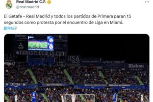 體育資訊10月20日訊 西甲第9輪,皇馬客戰(zhàn)赫塔費(fèi),兩隊(duì)球員開(kāi)場(chǎng)暫停15秒以抗議西甲海外賽,皇馬也在社媒和官網(wǎng)發(fā)文。