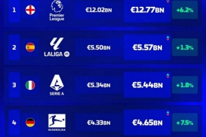 體育資訊10月20日訊 德轉(zhuǎn)此前更新了足壇球員身價,并盤點了五大聯(lián)賽球隊總身價榜,其中英超遙遙領(lǐng)先,以下為具體情況:
