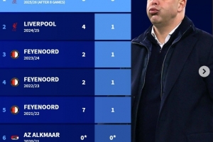21/22賽季費(fèi)耶諾德,聯(lián)賽7場(chǎng)失利,最長(zhǎng)連敗1場(chǎng)