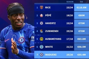 體育資訊7月19日訊 德國轉(zhuǎn)會市場統(tǒng)計(jì)表明,馬杜埃凱是阿森納隊(duì)史第7貴的引援,同時也是切爾西隊(duì)史第6貴的轉(zhuǎn)出球員。