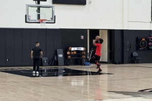 體育資訊10月21日訊 開拓者隨隊記者Sean Highkin曬照,開拓者后衛(wèi)亨德森訓(xùn)練后單獨進行了投籃練習(xí),楊瀚森的翻譯劉禹鋮(克里斯)在旁邊幫他撿籃板。
