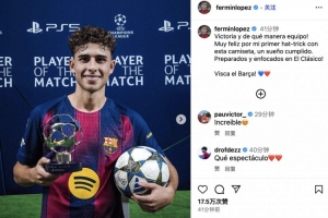 體育資訊10月22日訊 在本輪歐冠小組賽的一場比賽中,巴薩主場6-1擊敗奧林匹亞科斯,比賽中巴薩邊鋒費爾明上演帽子戲法。