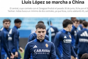 關(guān)于洛佩斯的去向,薩拉戈薩體育總監(jiān)切馬-因迪亞斯一周前表示:“這是球員的個人決定,轉(zhuǎn)會市場充滿不確定性。他的合同6月30日到期,雙方都是自由身。若未來有機會再合作,那就太好了?!?/p>