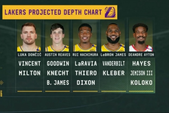 比賽期間轉播方曬出湖人目前的陣容深度: