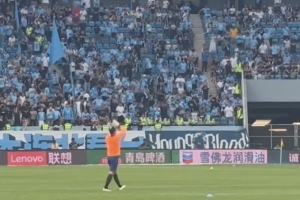 回到自己家鄉(xiāng)大連的泰山門將王大雷,在梭魚灣足球場受到了大連球迷的熱情歡迎,不少球迷喊起了他的名字,王大雷也不短揮手,向現(xiàn)場的家鄉(xiāng)球迷致意。