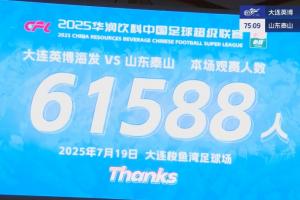 體育資訊7月19日訊 大連英博vs山東泰山下半場,現(xiàn)場播報,梭魚灣今天到場觀眾人數(shù)為61588人,這刷新了本賽季的中超上座紀錄,在中超歷史排名第二。