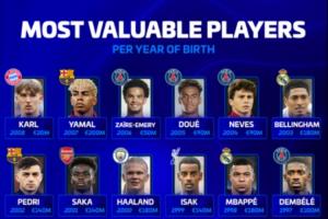 體育資訊10月27日訊 德轉(zhuǎn)統(tǒng)計了各年齡段身價最高球員,其中,梅西、C羅、哈蘭德、姆巴佩等人在列。