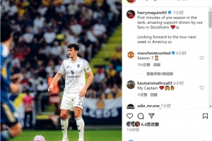 馬奎爾社媒曬出比賽照片,并寫道:“季前賽首次出場,斯德哥爾摩曼聯(lián)球迷的支持令人驚嘆。期待下周在美國的巡回賽。”