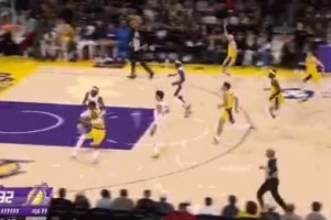 GIF-八村塁反擊被切球,裁判吹出界;湖人挑戰(zhàn)成功,阿夫迪亞犯規(guī)