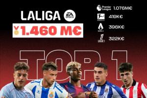 西甲是歐洲青訓(xùn)球員總市場(chǎng)價(jià)值最高的聯(lián)賽,達(dá)14.6億歐元,遠(yuǎn)超英超(10.7億歐元)、德甲(9.6億歐元)、意甲(8.9億歐元)及法甲(7.6億歐元)。在2025年夏季轉(zhuǎn)會(huì)窗口中,西班牙俱樂(lè)部通過(guò)本土青訓(xùn)球員轉(zhuǎn)會(huì)創(chuàng)下2.89億歐元的收入紀(jì)錄,創(chuàng)歷史新高,印證了其青訓(xùn)戰(zhàn)略的成功。