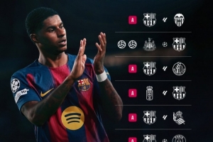 歐冠聯(lián)賽階段第1輪,巴薩2-1紐卡,拉什福德梅開二度