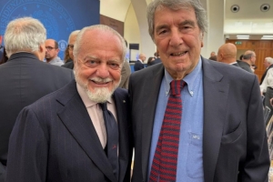 德佬也通過社媒曬出兩人合照,并配文:"很榮幸能在'德??说偎梗w育、尊重與法治獎)'的頒獎典禮上,為迪諾-佐夫這樣的偉大冠軍頒獎。我沒有忘記,佐夫除了是意大利足球的象征,還曾為那不勒斯效力了五年。"