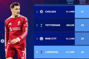 體育資訊10月30日訊 利物浦在本輪聯(lián)賽杯做出大輪換最終主場0-3完敗水晶宮,斯洛特在賽后抱怨球隊(duì)人手不足?!掇D(zhuǎn)會市場》則統(tǒng)計(jì)了BIG6的陣容深度情況。