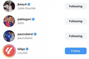 拉什福德已在ins上關(guān)注新隊友,其中包括奧爾莫、德容、孔德、加維、庫巴西、巴爾德、拉菲尼亞、萊萬等人。