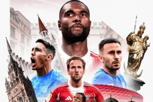 拜仁官方更新社媒動態(tài),發(fā)布了為此役制作的海報,凱恩、奧利塞、若納坦-塔出鏡。