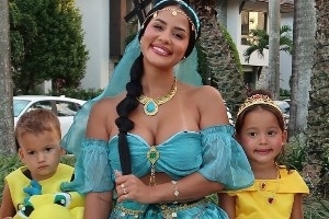 體育資訊11月3日訊 熱火球星泰勒-希羅的女友Katya Elise Henry?昨日在社媒曬出了自己的萬圣節(jié)裝扮,其中她COS阿拉丁神燈女主角,男友希羅COS野獸。