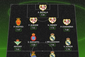 體育資訊11月3日訊 WhoScored評出了西甲10月最佳陣容,姆巴佩、貝林厄姆、維尼修斯、安東尼在列。