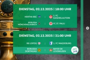 體育資訊11月6日訊 德國杯1/8決賽各場開球時間公布,12月3日4點勒沃庫森vs多特蒙德,4日3點45柏林聯(lián)合vs拜仁。