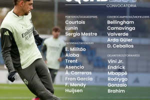 體育資訊11月8日訊 本輪西甲皇馬將在客場(chǎng)對(duì)陣巴列卡諾,球隊(duì)官方也公布了本場(chǎng)大名單,瓊阿梅尼缺席,具體如下:
