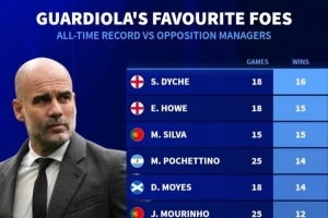 瓜帥執(zhí)教生涯對陣教練的勝場最多榜