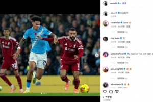 奧賴?yán)餐ㄟ^社媒曬出自己對(duì)位薩拉赫的比賽照,并配文“硬!”表達(dá)自己的興奮之情。
