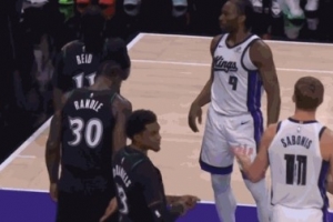 GIF-小薩極慢歐洲步上籃不中,自投自搶補(bǔ)籃被犯規(guī)