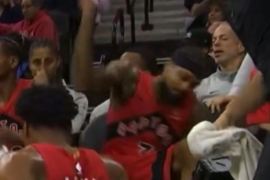 “很多人都認(rèn)為他應(yīng)該站起來道歉。我理解他的沮喪,他在比賽中摔倒得很尷尬,而且那是一場艱難的比賽,他們有很多失誤,最終沒能贏得比賽。但我不認(rèn)為這是正確的回應(yīng)方式。有人說他像三歲小孩一樣,確實如此,這種事情經(jīng)常發(fā)生在有小孩的家庭里。但我認(rèn)為這不是合適的反應(yīng)。他應(yīng)該對此道歉,但他沒有這樣做,沒有任何反應(yīng)。我不知道他當(dāng)時是怎么想的,但作為一個普通人,我認(rèn)為他應(yīng)該有所表示。他不應(yīng)該坐在那里看著大家清理,尤其是當(dāng)水濺到隊友臉上時。他應(yīng)該幫助清理,而不是讓別人的生活變得更加困難。也許這是因為他是超級富豪,覺得這些人理應(yīng)為他服務(wù)。但我們不應(yīng)該輕易下結(jié)論。他看起來非常沮喪,可能只是心情不好而已?!盌onnie Freeman表示。