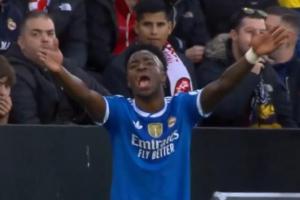 體育資訊11月10日訊 西甲第12輪,皇馬客場(chǎng)0-0悶平巴列卡諾,根據(jù)轉(zhuǎn)播方DAZN記錄的畫面,比賽中維尼修斯與庫爾圖瓦就組織進(jìn)攻的方式進(jìn)行了交流。