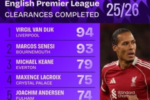 本賽季英超解圍榜: