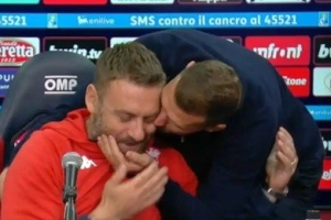 賽后德羅西舉行了新聞發(fā)布會(huì),而就在他接受采訪時(shí),佛羅倫薩前鋒哲科進(jìn)入發(fā)布會(huì)現(xiàn)場(chǎng),并且抱住德羅西連親幾口,哲科還說“祝你好運(yùn)”。哲科和德羅西過去曾是羅馬隊(duì)友,兩人關(guān)系很好,盡管這次作為對(duì)手相遇,但哲科還是以這種方式和德羅西打招呼。