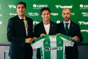 體育資訊7月22日訊 今天,貝蒂斯俱樂部正式宣布里克爾梅成為球隊(duì)的新成員,他與俱樂部主席安赫爾-哈羅和體育總監(jiān)曼努-法哈多一起亮相發(fā)布會(huì)。