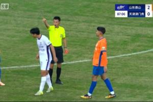 中超第29輪,山東泰山vs天津津門(mén)虎,比賽第87分鐘,陳哲宣不滿判罰連續(xù)向主裁李海新輸出,主裁先是黃牌警告,隨后直接掏出紅牌罰下陳哲宣。