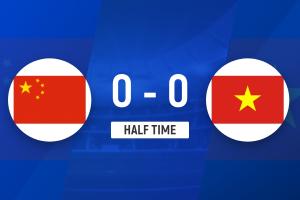 上半場比賽結束,U22國足0-0越南U22。