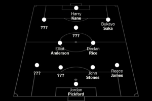 其中,皮克福德將是主力門(mén)將,里斯·詹姆斯是主力右后衛(wèi),斯通斯確定一個(gè)首發(fā)中衛(wèi)位置;中場(chǎng)位置確定了賴(lài)斯、埃利奧特·安德森兩個(gè)首發(fā);前鋒位置凱恩、薩卡穩(wěn)坐首發(fā)。