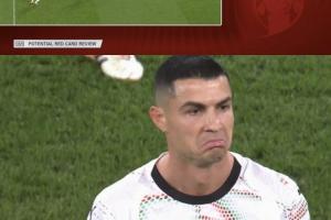 體育資訊11月14日訊 葡萄牙vs愛爾蘭,C羅下半場因肘擊動作被罰下。