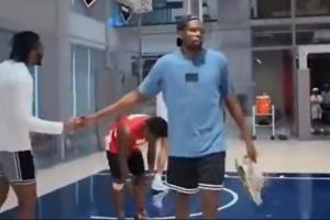 比賽打著打著,杜蘭特嫌棄Speed上籃不中,直接脫下了球鞋選擇退賽,他表示:“這個上籃我真是受不了了。等我有了更強的隊友我會回來的?!?/p>