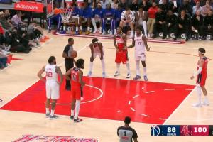 第三節(jié)32.2秒的罰球期間,現(xiàn)場能聽到亞當(dāng)斯在怒斥伊森,聲音很大(現(xiàn)場錄像原聲清晰可聞)。伊森在對(duì)面站著攤手不解。