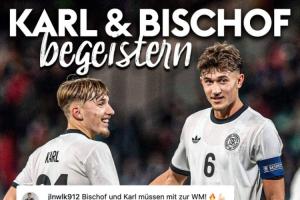此役,來自拜仁的雙子星卡爾和比朔夫貢獻(xiàn)了極佳的表現(xiàn):17歲的卡爾首次入選德國U21,本場比賽貢獻(xiàn)2球。20歲的比朔夫更是擔(dān)任德國隊(duì)的場上隊(duì)長,貢獻(xiàn)3球1助。在數(shù)據(jù)機(jī)構(gòu)Sofascore的賽后評分中,二人均得到了10分滿分。