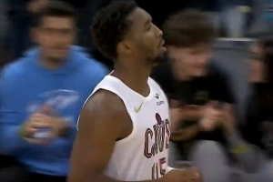 GIF-米切爾三分+妙傳亨特上空籃