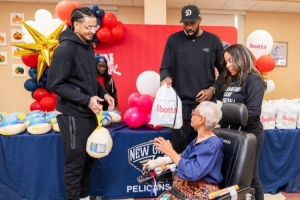 體育資訊11月17日訊 當(dāng)?shù)貢r間11月27日是美國的感恩節(jié),臨近節(jié)日,鵜鶘官方在比賽間隙組織活動回饋社區(qū)。