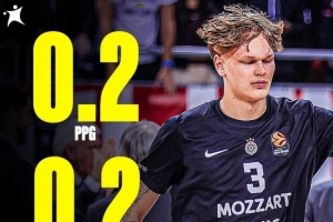 體育資訊11月17日訊 明年的熱門(mén)新秀穆里寧截止目前為止,在歐籃聯(lián)只出場(chǎng)4次,場(chǎng)均出場(chǎng)時(shí)間僅為1分55秒,而他的場(chǎng)均數(shù)據(jù)可以忽略不計(jì),4場(chǎng)比賽合計(jì)就得到1分,場(chǎng)均為0.25分,也沒(méi)有籃板、助攻進(jìn)賬。